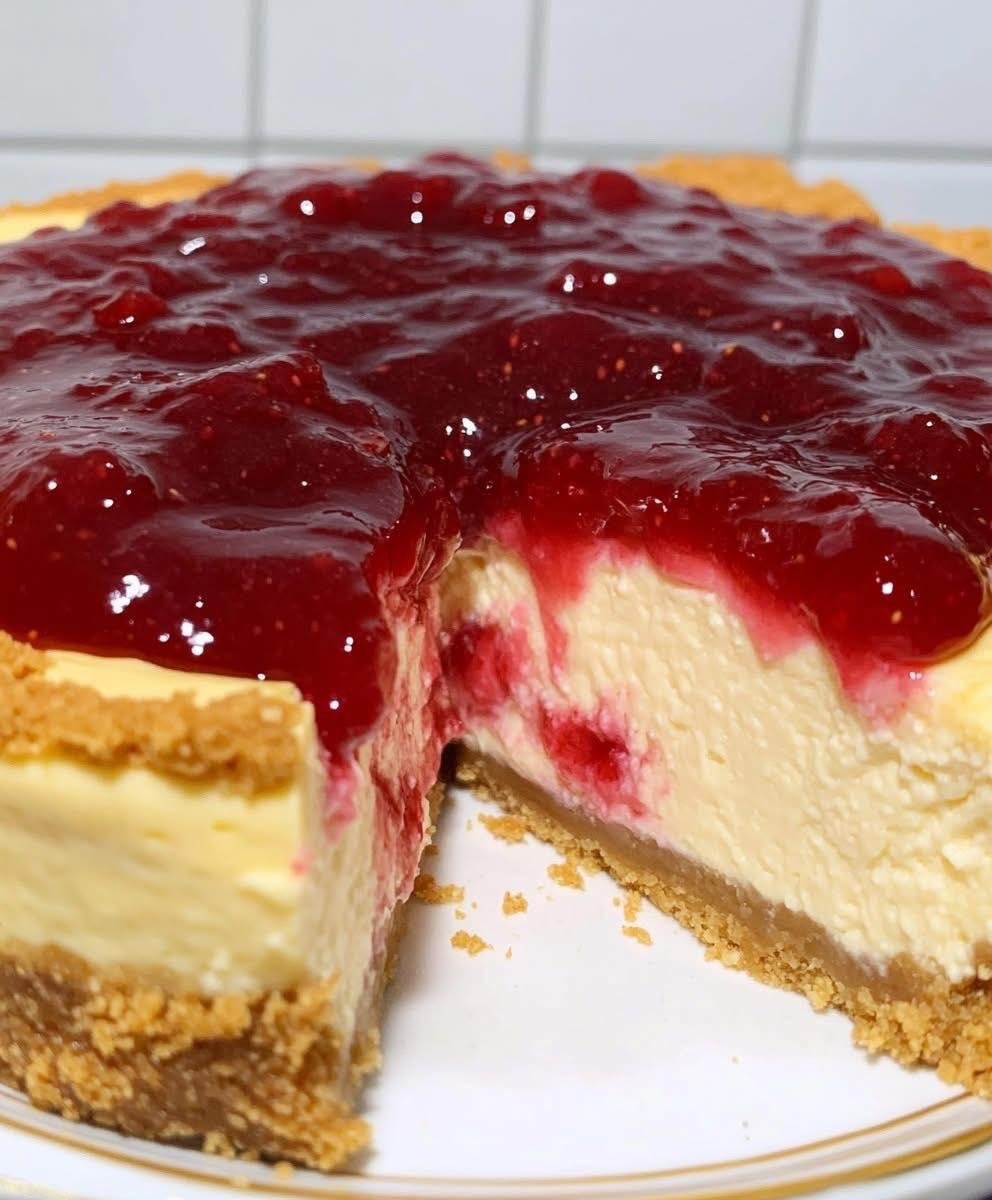 Tarta Cremosa de Queso con Mermelada Casera de Fresa